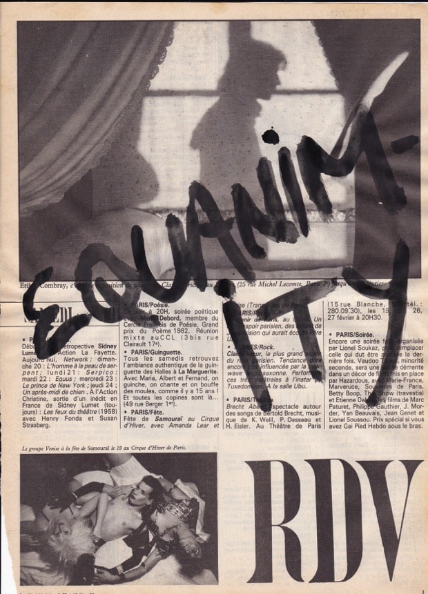 The pages are yellowed and cracked with age. Dutch Curator Erik Hagoort gave SMW a few huge boxes of these French gay liberation magazines from the 80s, and SMW intuitively started painting on them. There are many more than those listed in the archive.