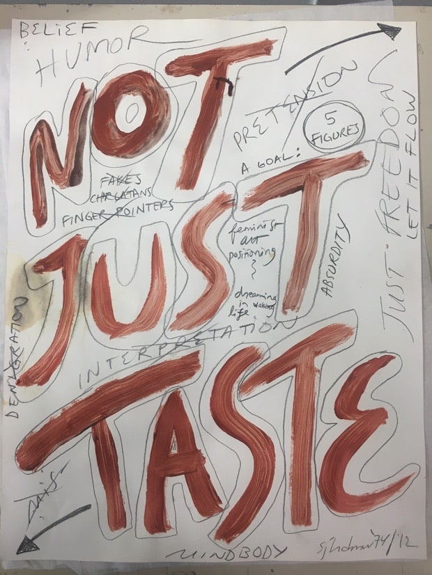 The sketches are layered, messy, chaotic and often, as Sands says, “irritatingly large” for what they are. They mischievously confuse the terms of what we understand value to be. The drawings are singular statements, sometimes coming in a pair that sits in Marx’s chiasmus, sometimes tracking herstories, sometimes examining truisms and falsehoods, and always connected to LABOR. All are ‘language as figuration,’ breaking apart wrought boundaries between the acting body and thinking body, the gestures of the hand and of the brain, the feeling and the language, the sex and the cerebral. Or, perhaps better put, they make such boundaries fluid. All open onto a lovingly idiosyncratic world-making systems, as Amalia described: ‘gay gay gay’ as a world structure and a stuttering prophetic chant. IS THIS GOOD FOR ANUS?